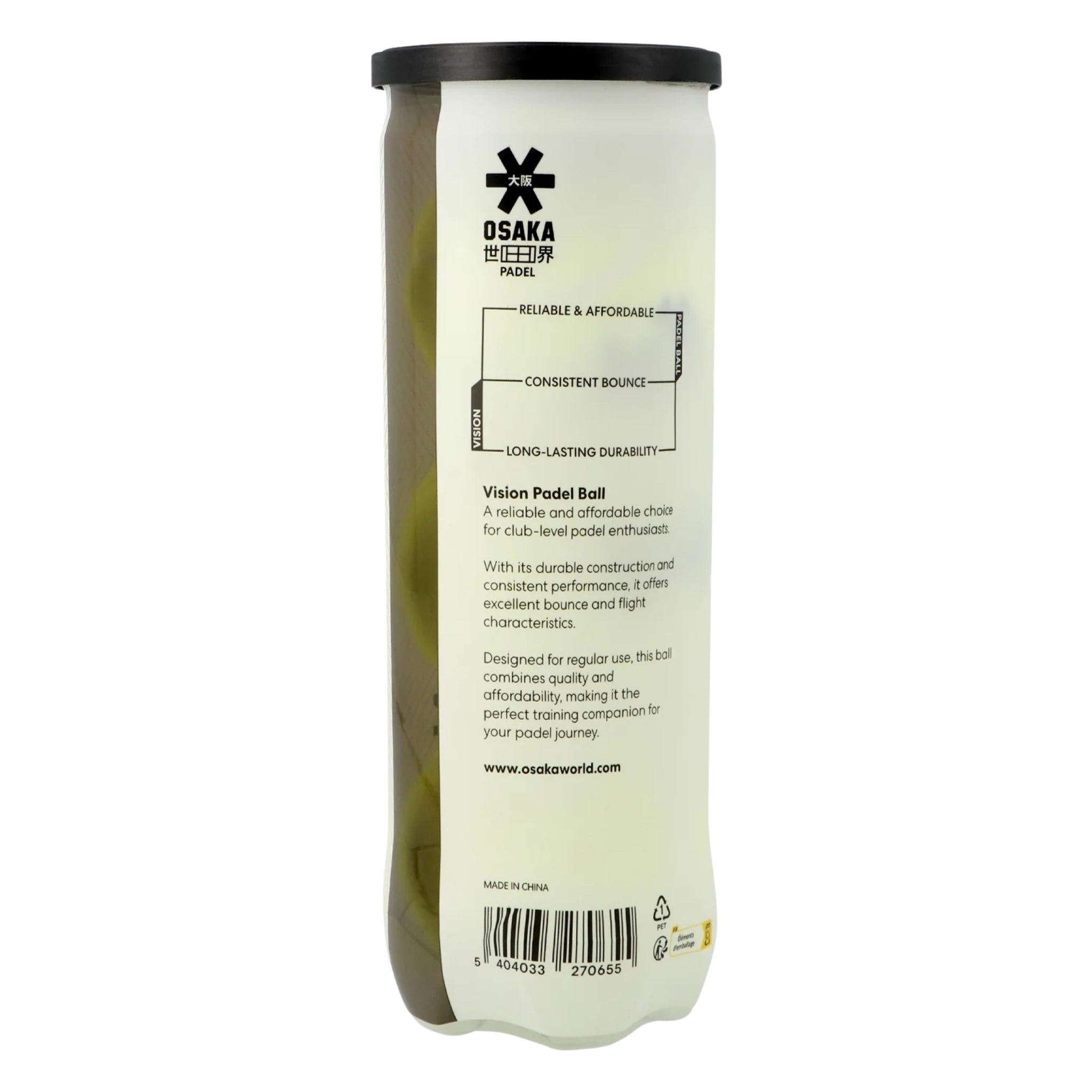The Osaka Vision Padel Balls have been made for the club level player that is looking for a quality ball as their go to when playing their matches. Made to be consistent, durable and perfect for regular use.