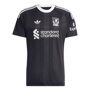 Created to keep clean sheets on the road, this Liverpool FC goalkeeper jersey shares its Trefoil and vintage club crest with the club's third kit outfield shirts. Clad in imposing black colors, it's designed to stretch with your every movement for first-class keeping. Behind the scenes, AEROREADY manages moisture to keep you focused on every soccer threat.