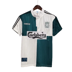 Introducing the Liverpool 95/96 Away Jersey, a classic tribute to one of Liverpool FC's most iconic seasons. With a timeless design featuring bold colours, an embroidered club crest, and premium breathable fabric, this jersey captures the essence of the 1995-1996 campaign. Symbolizing historical significance and authenticity, it replicates the on-field attire of Liverpool legends. A limited edition, it's a must-have for passionate fans and collectors alike, offering a unique opportunity to relive the glory days and showcase allegiance to the Reds.