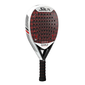 Siux have developed the Diablo Revolution Pro together with the legendary Sanyo Gutiérrez to be a hybrid shaped racket with a medium touch for the advanced Padel player. Made with the unique black and red 15K Textreme carbon fiber face in combination with a medium EVA core thisPadel Racket has all the power and control necessary for the defensive player that like to take charge of the game.