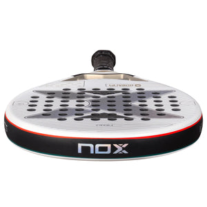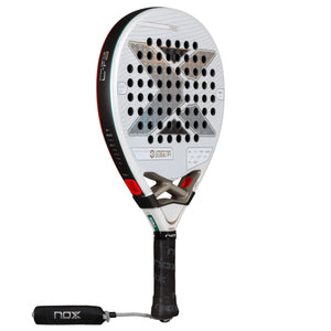 This is all surrounded by the newly developed carbon fiber frame featuring the tried and tested dynamic composite structure, where more material is applied from the frame edge to four centimeters into the face,minimising the difference in hardness between the frame and the face.But that's not all this lethal weapon has to offer, included in the endless list of improvements and technologies is the new pulse system, which assists in reducing the vibrations transmitted to the player's hand with the insertion of lateral rubber bands that go from the base of the frame right through to the bottom of the racket. At the bottom, we have a lengthened handle for increased grip plus the NOX Custom Grip, which has been patented by Nox and certified by Testea Pádel toincrease grip by 52% and reduce vibrations that are transmitted to your hand by 29%. This is also fullycustomisable. Below this, we have the Smartstrap® system allowing you to easily replace your strap without removing the bottom cap.