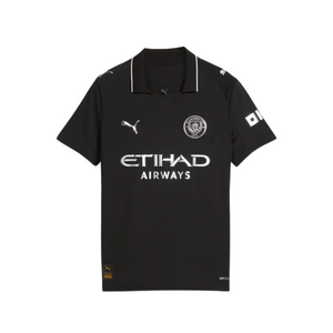 The earliest-known kit in Manchester City’s history dates back to 1884, when the football club was based in Gorton. The 25/26 Away Kit is a tribute to the early Cityzens, reimagined with a nod to the club's innovative spirit. The all-black design takes inspiration from that historic kit, combined with metallic details to celebrate the timeless essence of Manchester City Football Club.