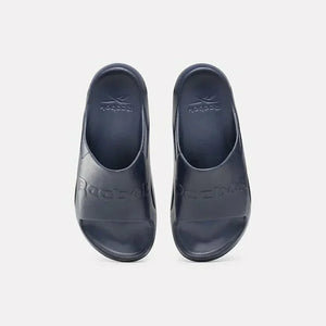 Go from the pool deck to the street. These easygoing slides slip on for a laid-back vibe. A big Reebok wordmark adds sporty style to the upper. The soft foam footbed keeps feet comfortable on sand or sidewalk.