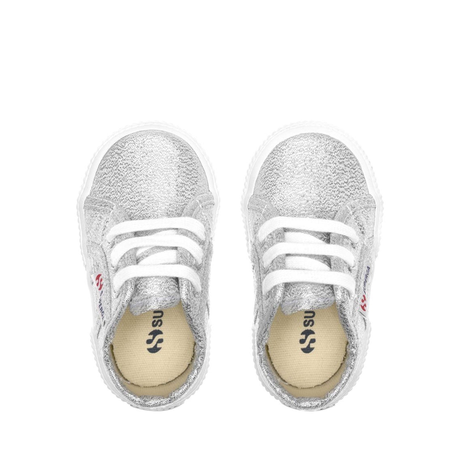 These  Superga sneakers stand out with a playful mix of modern sparkle and old-school  charm – perfect for the little trendsetters in your life. Equal parts chic and  comfortable, the lightweight silhouette boasts a lamé upper, a rubber sole and a  contrast-coloured logo tag for a signature touch.