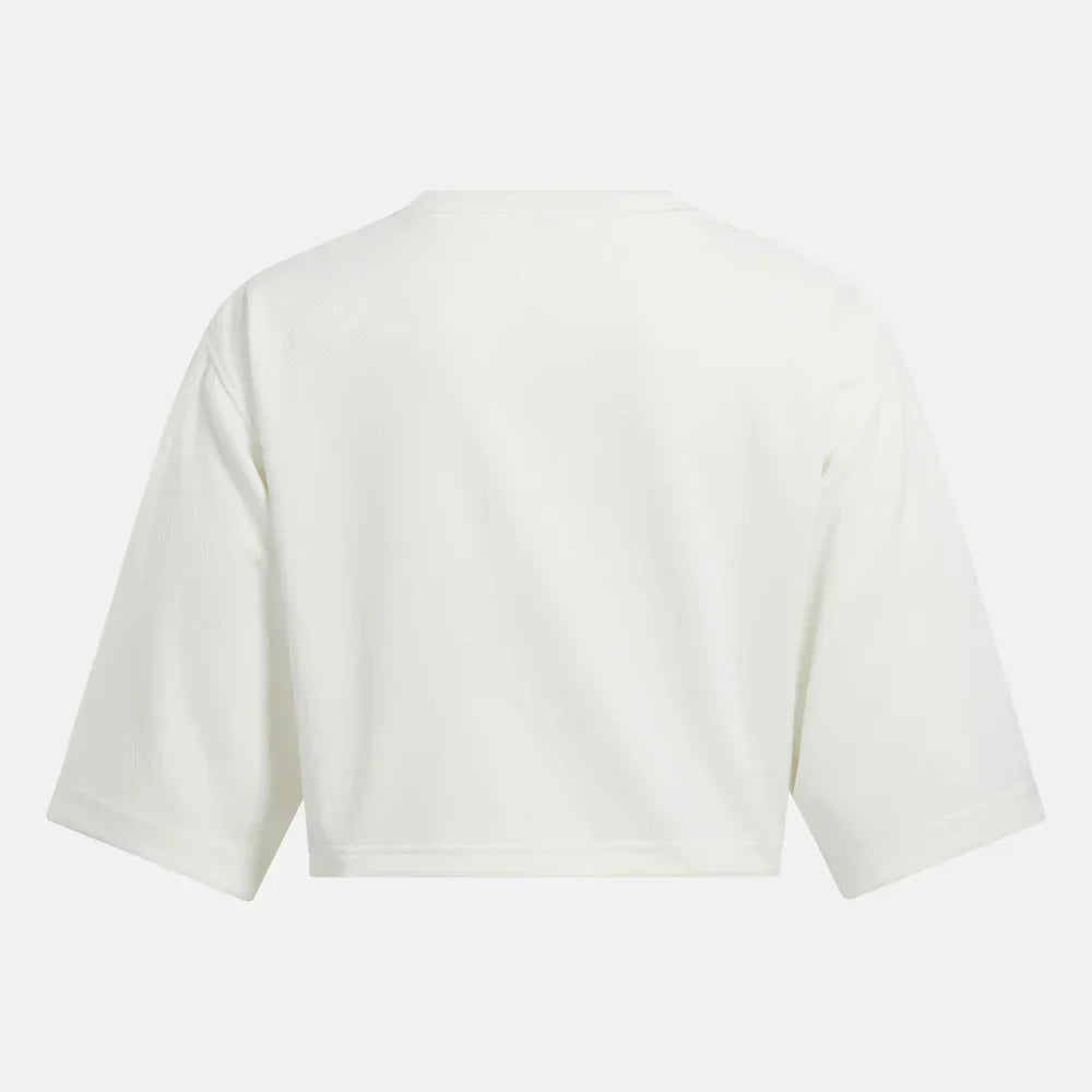 Get the look of players on the field when you wear this women's Reebok top. Inspired by the Team Traditions of fans, this cropped, relaxed Team Top fits your style on game day or any day. Knit mesh fabric feels soft and light. It's like you've already won.